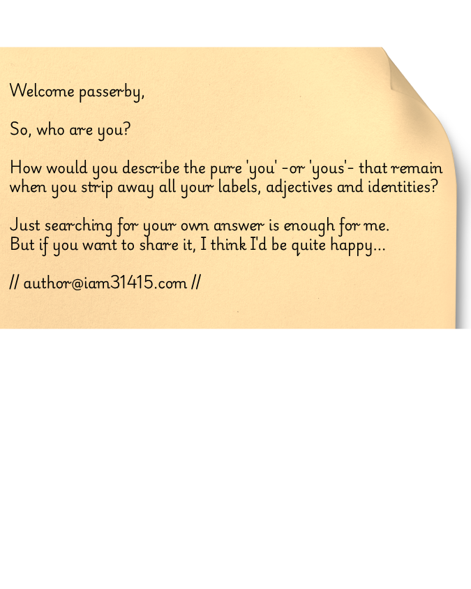 Like everyone else, I am defined in this life (at first sight) by the surname ‘given’ to me, the name chosen by my family, and my physical appearance, which I owe to my genetic code determined before I even set foot in this world (thankfully, it’s not a huge debt!).